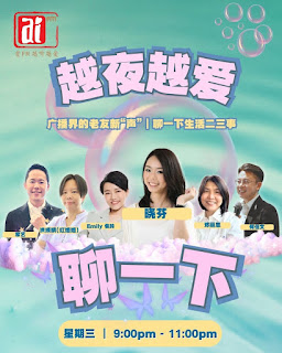 每逢星期三晚间的《越夜越爱》,是 DJ晓芬@徐晓芬的专属时段。中间9-11pm,会邀来一位嘉宾主持,共同聊不同的生活话题。
